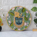 Crafted on a wooden plate, this pichwai portrays Shrinathji, a Hindu deity worshipped for his grace and compassion. The intricate details and vibrant colors create a visually stunning and devotional artwork.